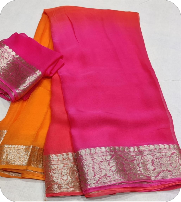 ~Chaandni~ Pure Chiffon Rose Pink Banarasi Saree