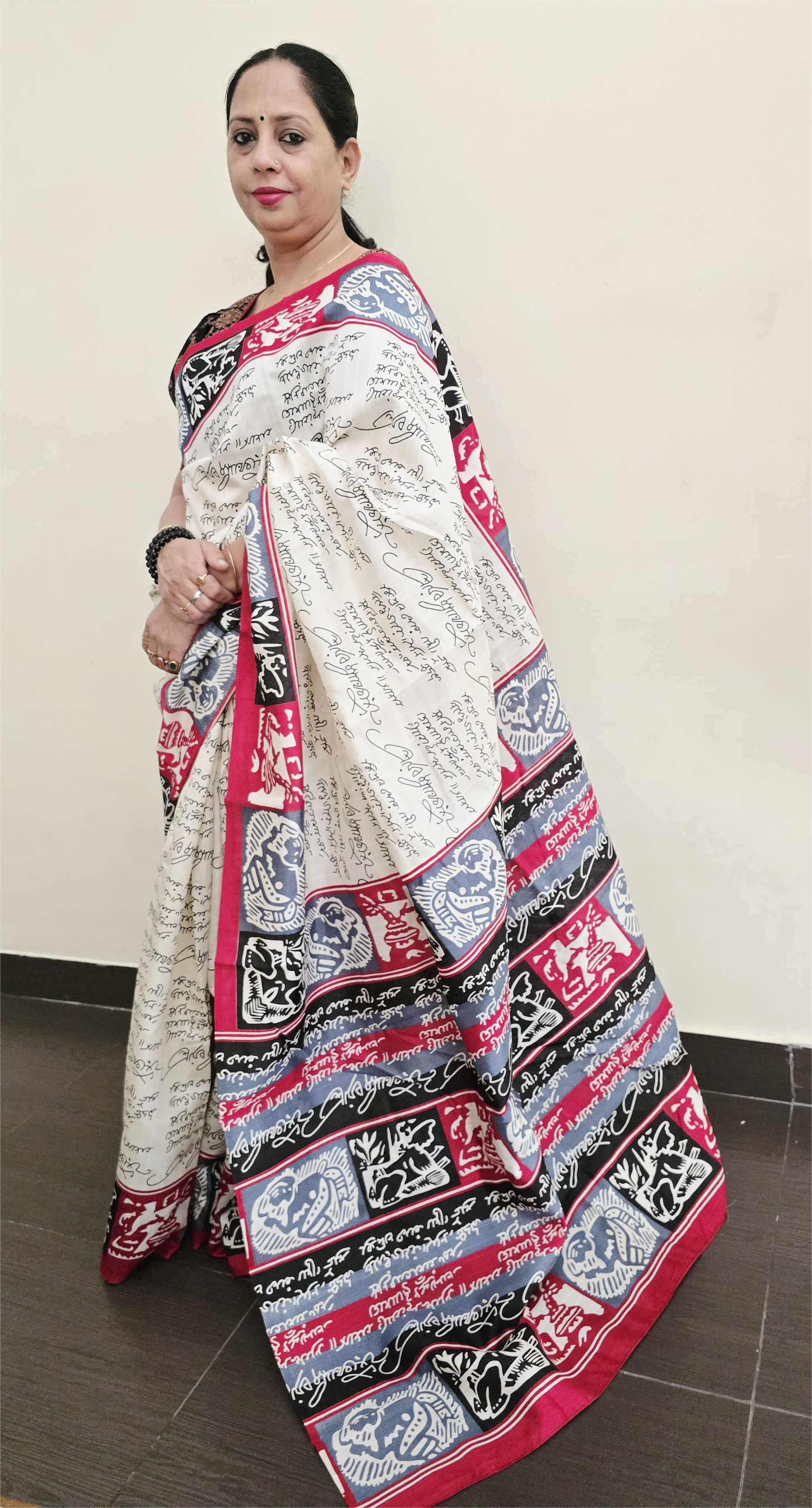 ~ Sanskriti ~ Off White Bhagalpuri Silk Saree